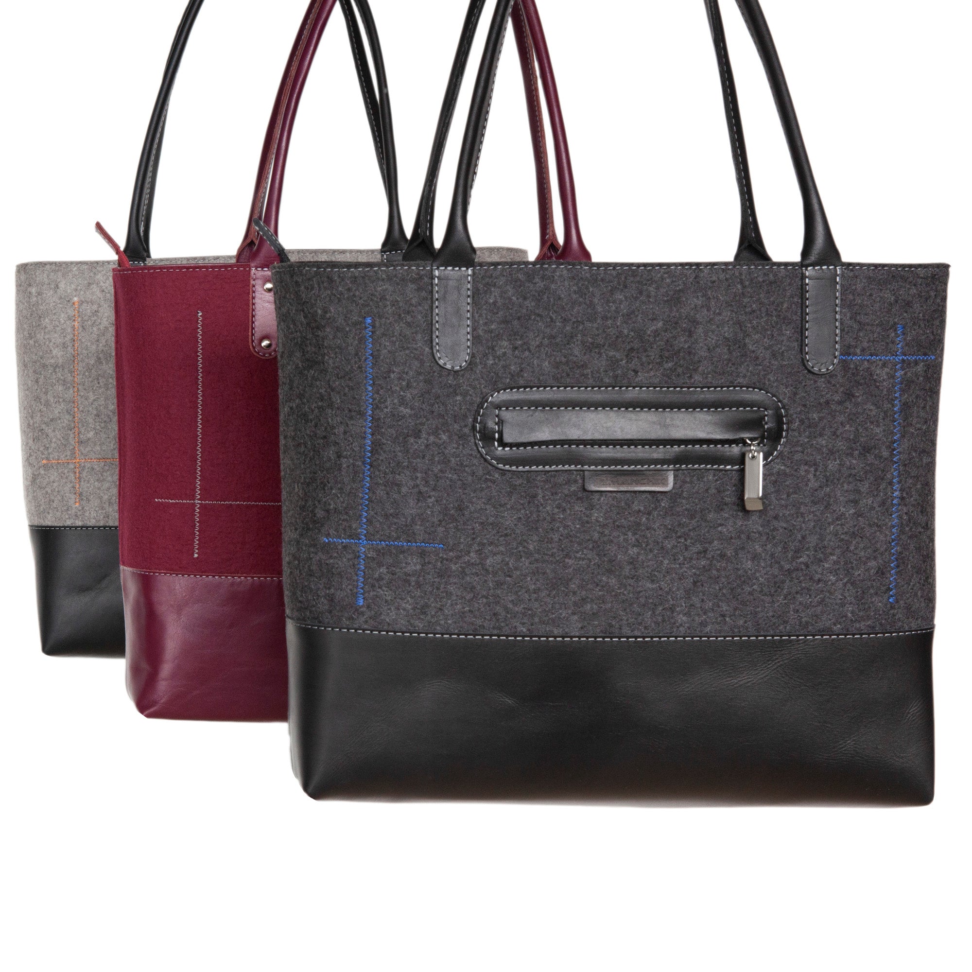 A classic carryall with a fresh look! Take LANA out for errands or throw your laptop in, it goes where you do. Handmade with designer quality wool felt and durable leather detailing, this tote features timeless, distinctive stitching and is designed to stay by your side for many years to come.